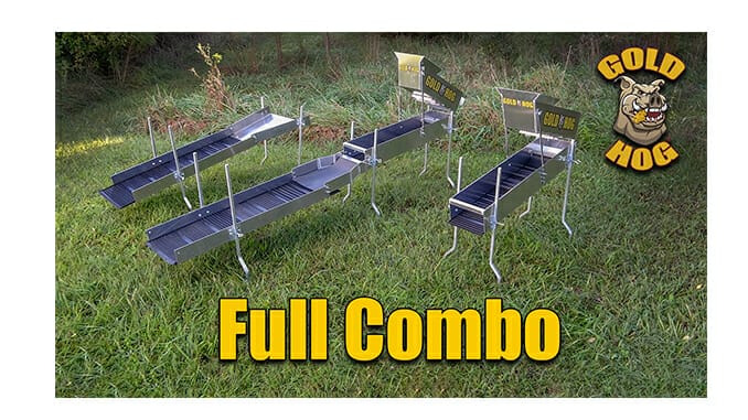 This combo package includes the Mini, the flare extension, the stream sluice flare, and all the pre-made matting. All you need is a pump and hoses. This package is the ULTIMATE starter pack or a great lightweight package for the prospector looking for more. With gold projected to hit $3000 by 2023, now is the right time to invest in the right equipment. (Legs are not included for stream sluice, nor do we sell them separately. Legs from the highbanker are used.)